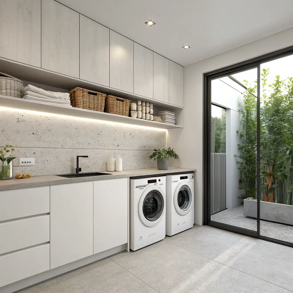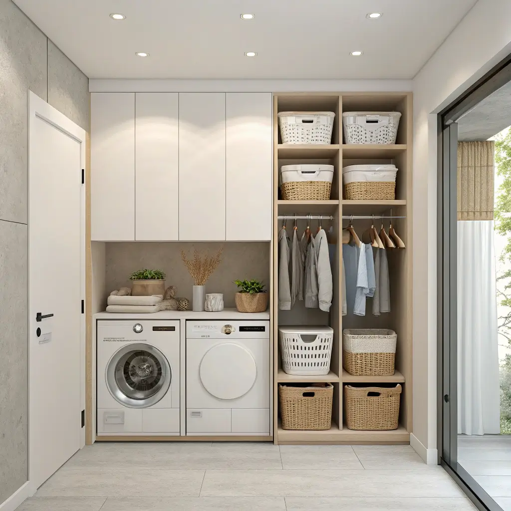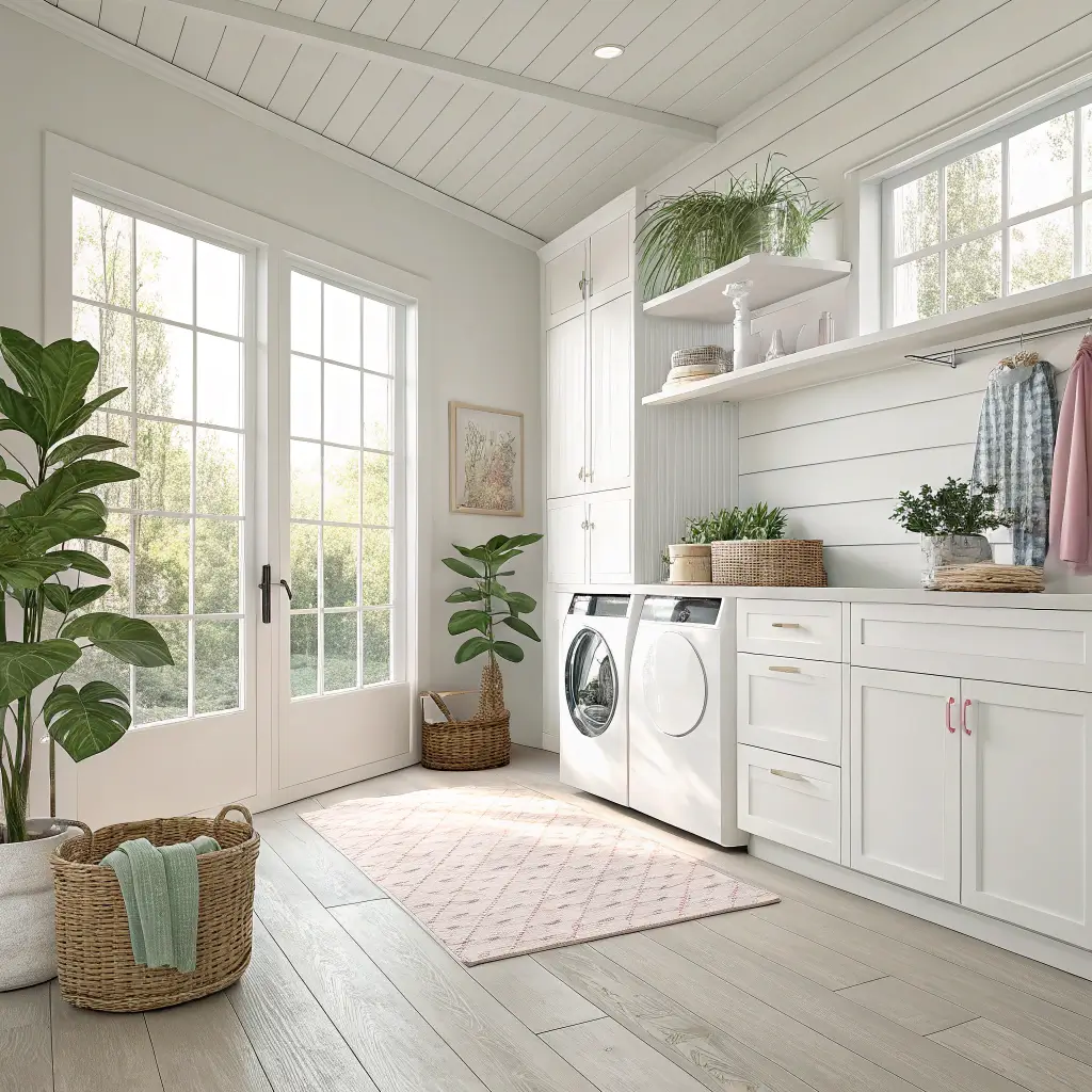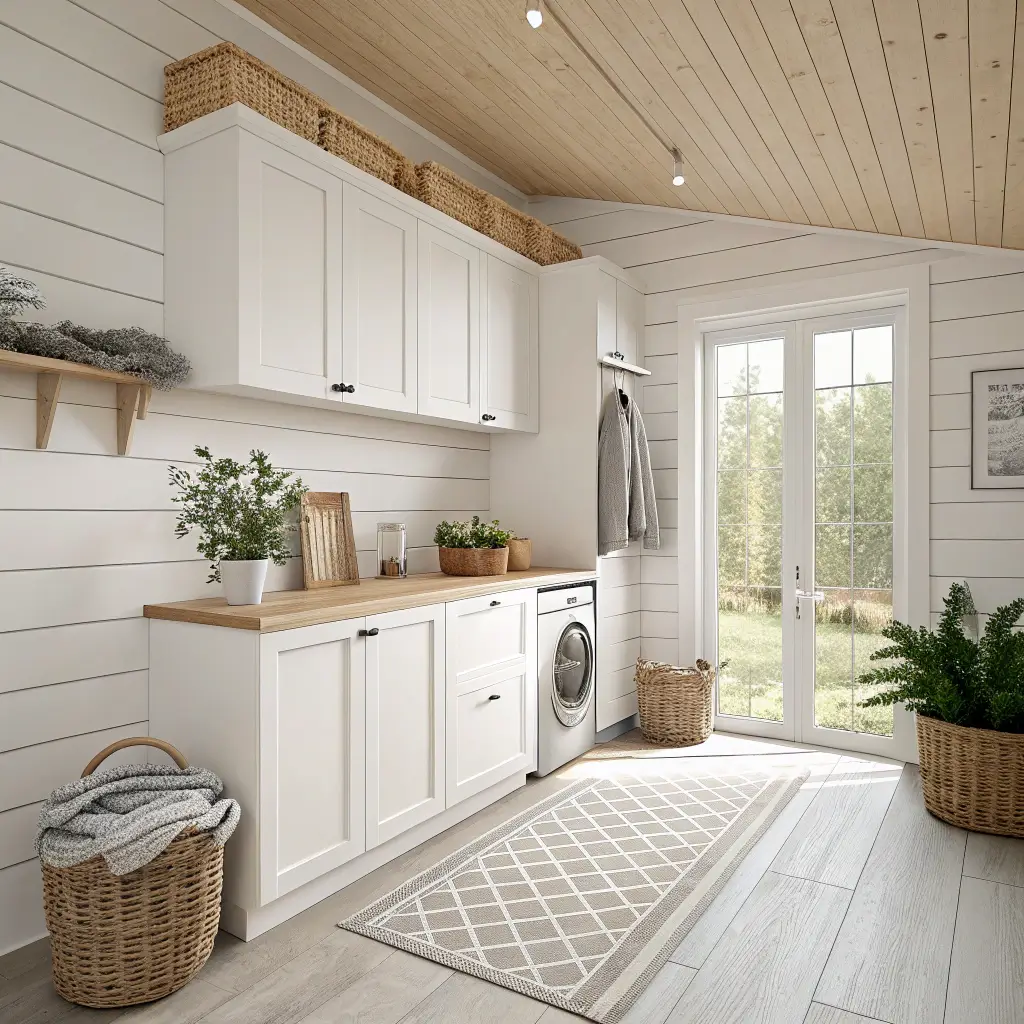 Scandinavian design brings that perfect balance of function and beauty. Think light woods, white walls, and cozy textiles that make even utility spaces feel inviting.