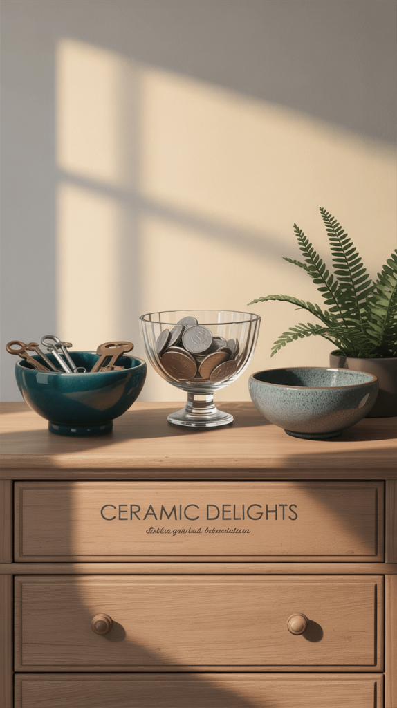 The key is to use the bowl for items you want to keep handy but out of the way. It’s a simple trick that adds a layer of sophistication and purpose.