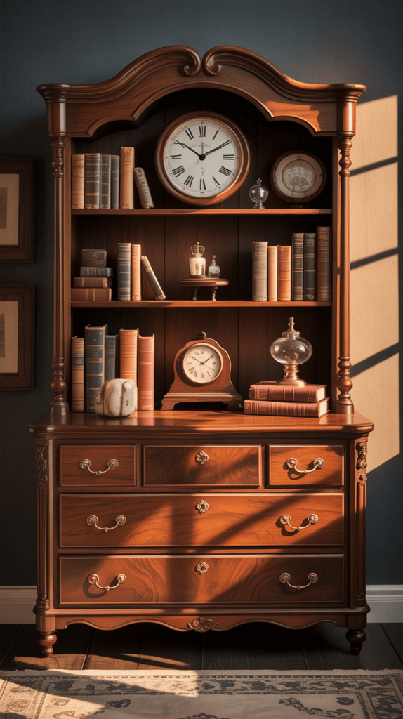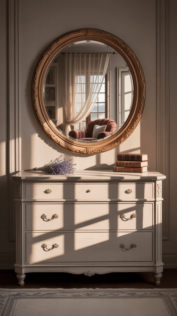 Incorporating vintage or antique finds on your dresser makes your space feel collected over time, not bought in one trip to a big-box store.