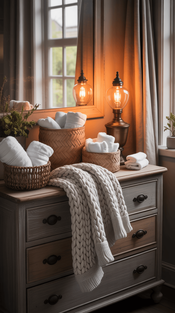 - Add a Textural Runner: Instead of leaving the bare wood of the dresser top, drape a runner across it. This could be a chunky knit blanket, a smooth silk scarf, a rough burlap textile, or a patterned rug runner. It instantly adds a layer of coziness.