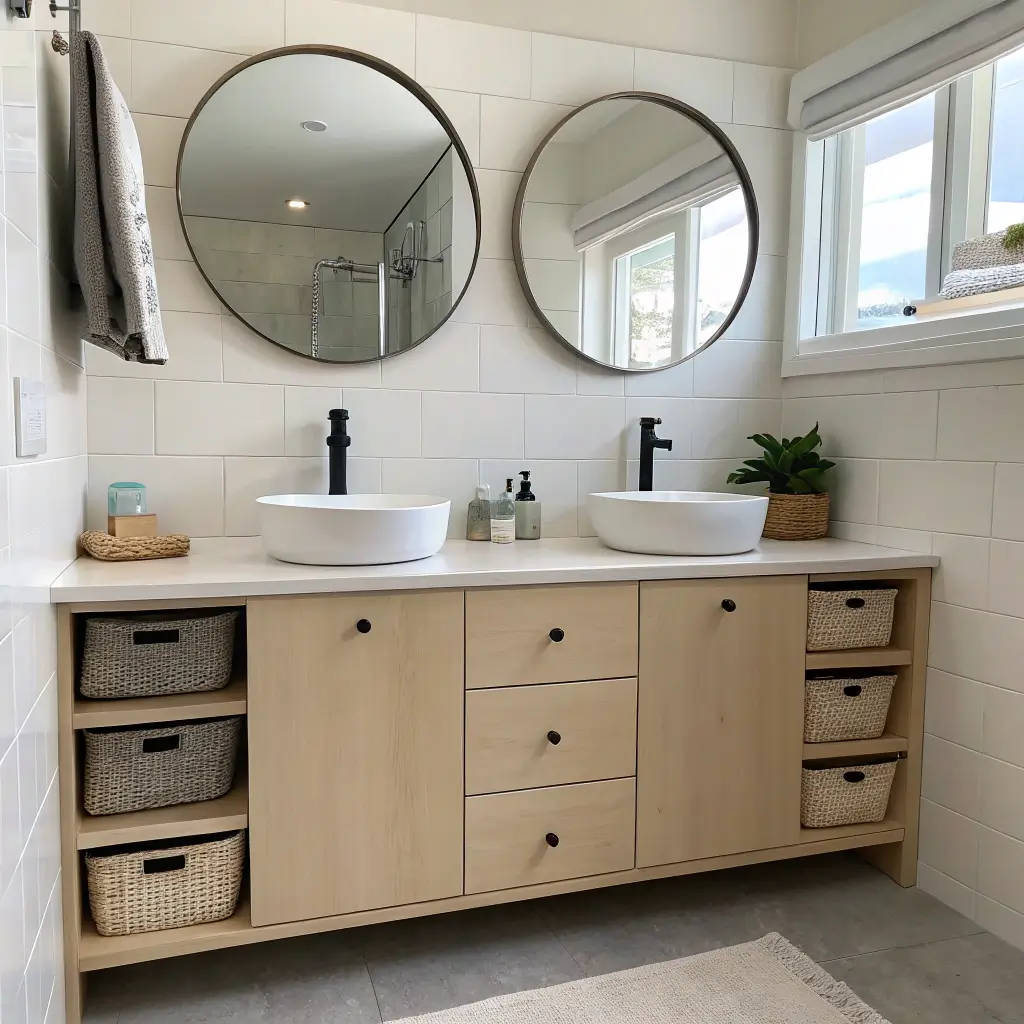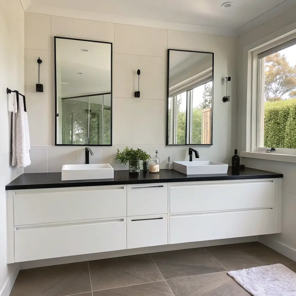 So there you have it – 15 dual vanity ideas that’ll transform your bathroom from chaotic to calm. Whether you’re drawn to floating modern designs or classic pedestals, the key is choosing what works for your space and lifestyle.