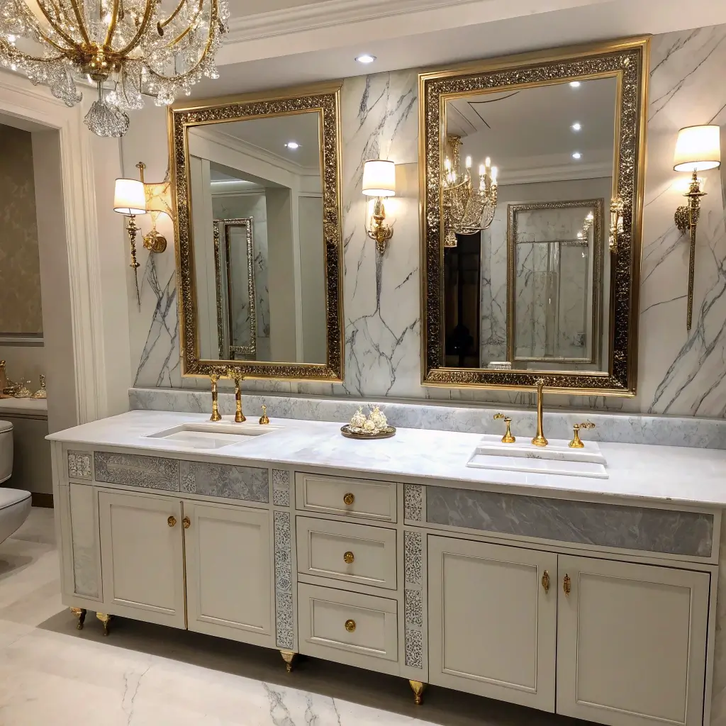 - Gold-framed mirrors for continuity