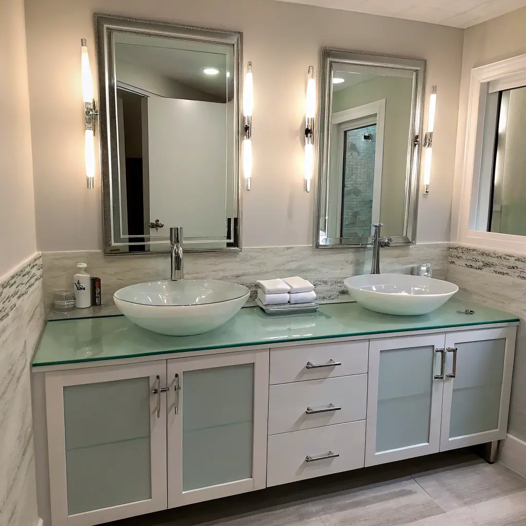 Contemporary Glass Countertop Double Vanity