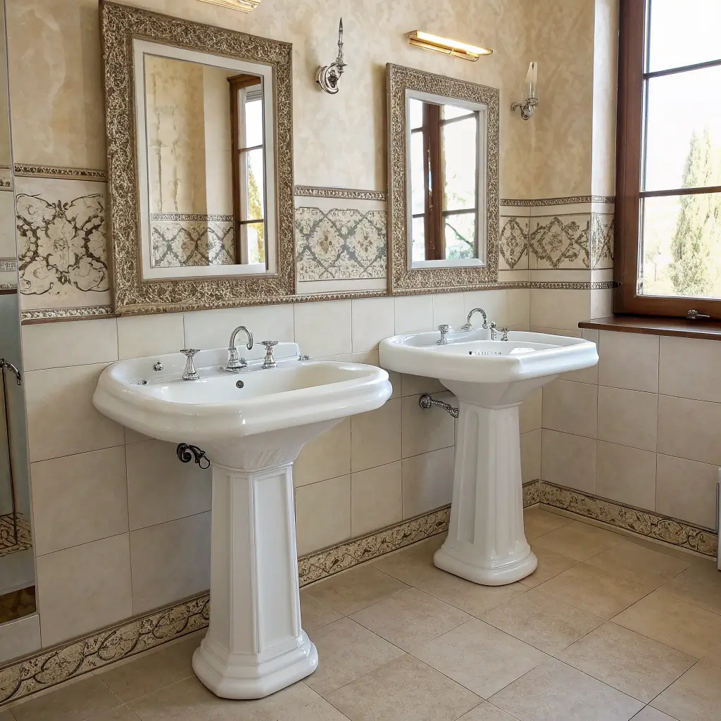 Sometimes classic is the way to go. Pedestal sinks get a bad rap for lacking storage, but double pedestal setups create such an elegant, timeless look. My grandmother had matching pedestals in her bathroom, and 40 years later, they still look current.