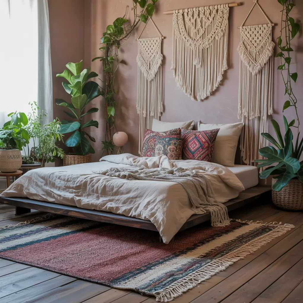 Don’t forget the golden rule of boho: if it looks too organized, you’re doing it wrong. The beauty lies in the controlled chaos, with dusty pink as your calming constant.