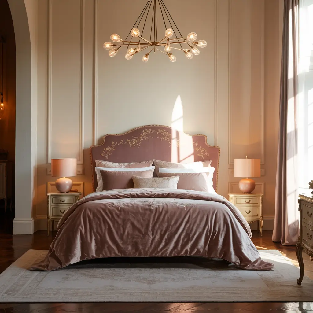 Luxurious Dusty Pink Velvet Bedroom