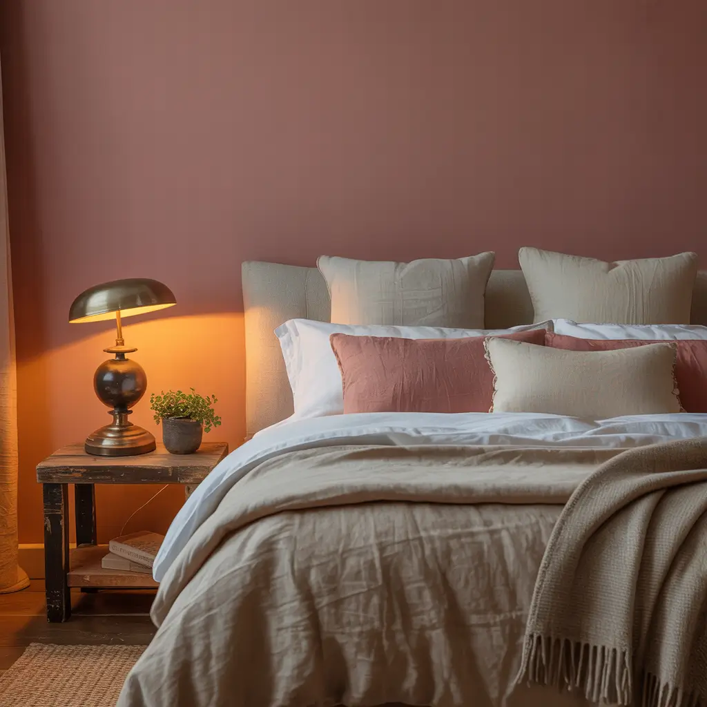 Choose your wall wisely—usually the one behind the bed works best. Paint it dusty pink while keeping others neutral, then echo the pink throughout the room with accessories. This creates cohesion without going overboard.