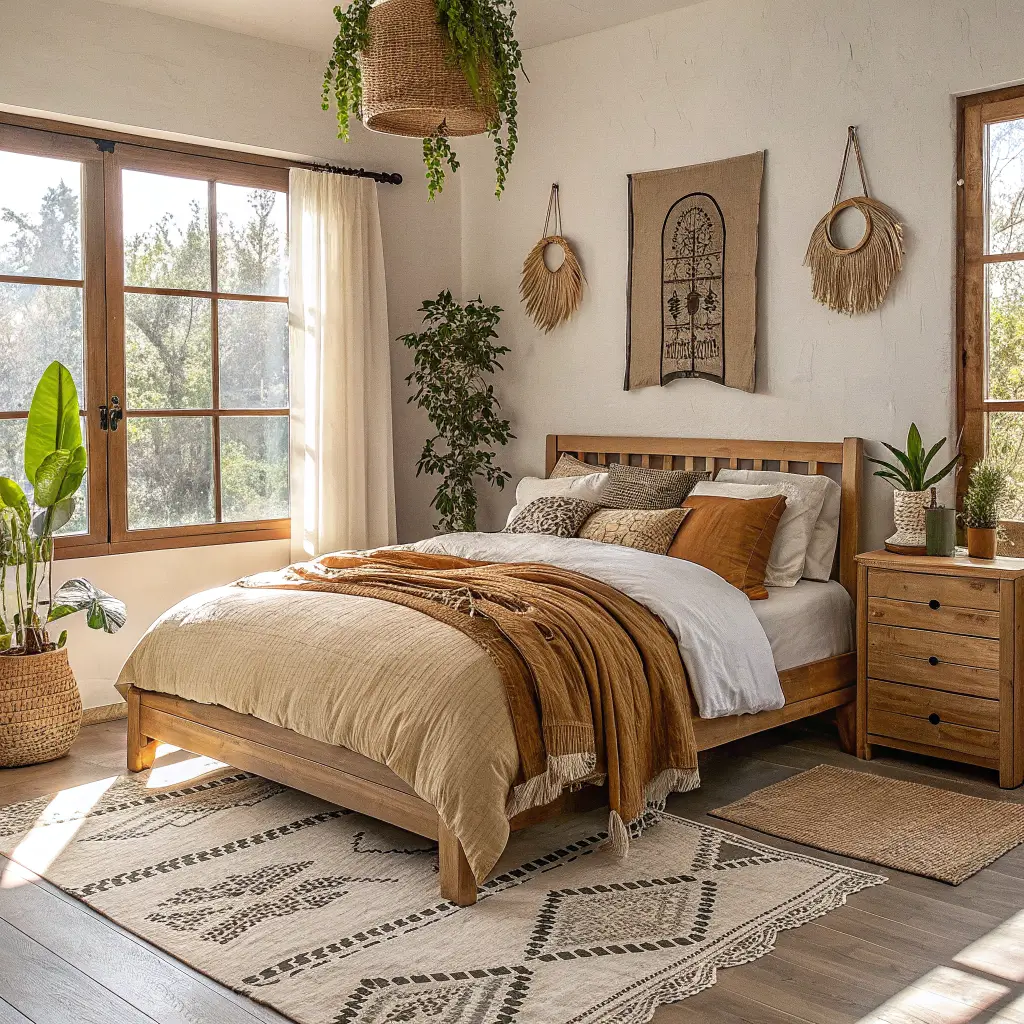 Furniture arrangement can make or break your earthy aesthetic. The goal? Create flow while maintaining function. Your bedroom should feel spacious yet intimate, organized yet organic.