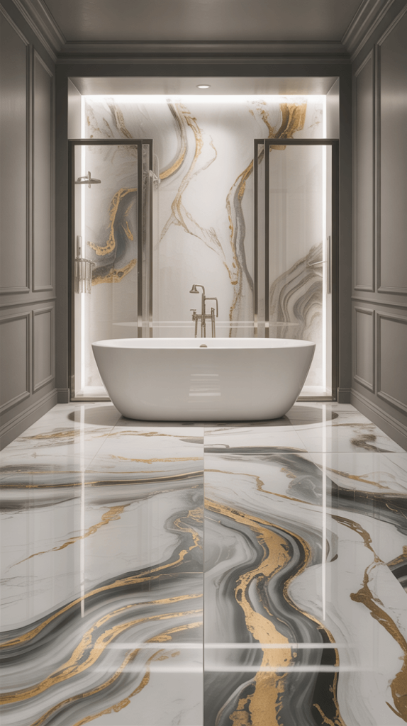 Want the opulent feel of Carrara or Calacatta marble without the exorbitant cost, the tedious installation, and the high maintenance? Marble-effect vinyl tiles are a godsend. The printing technology on these is insane these days; the veining looks incredibly realistic.