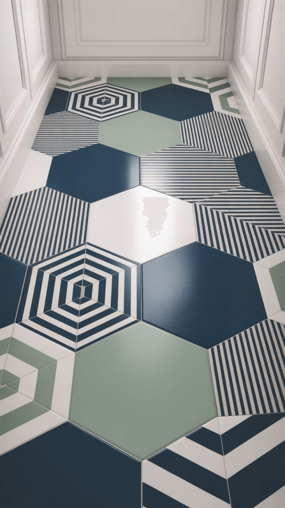 My take: I used a black and white hexagon pattern in my own powder room, and the effect was staggering. It looks like a million bucks, and everyone assumes I hired a pro. Little do they know I did it while binge-watching a true crime series.