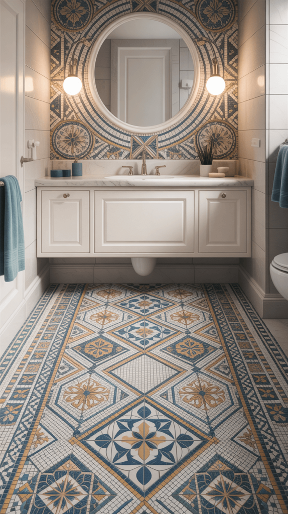 How to Nail It: If you go bold on the floor, keep the walls and fixtures relatively simple. Let the floor be the star. A white wall and a plain vanity will balance the look perfectly.