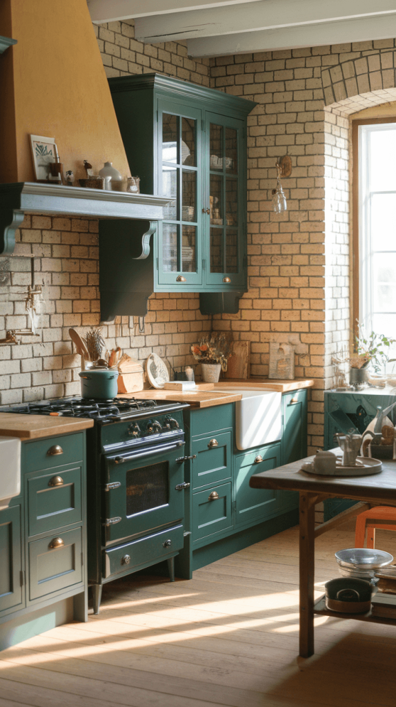 12. Emerald Green Farmhouse Style Kitchen