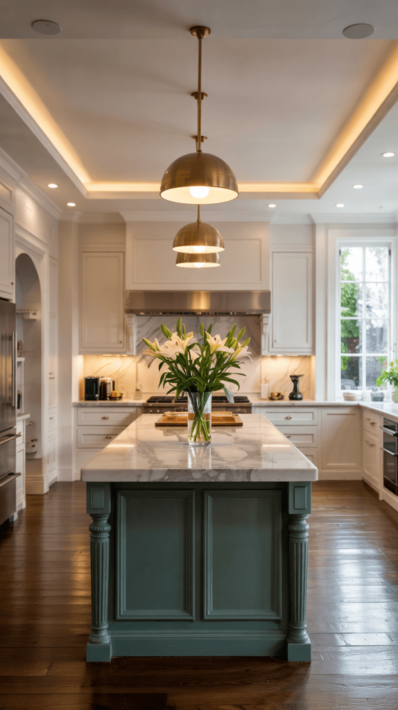 3. Emerald Green Island with Marble Countertops