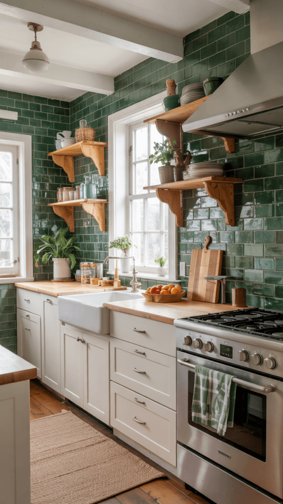 4. Emerald Green Backsplash Tiles