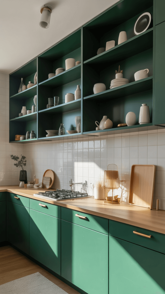 7. Emerald Green Open Shelving