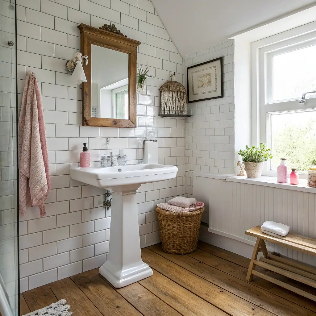 Cozy Pastel Cottage Bathroom