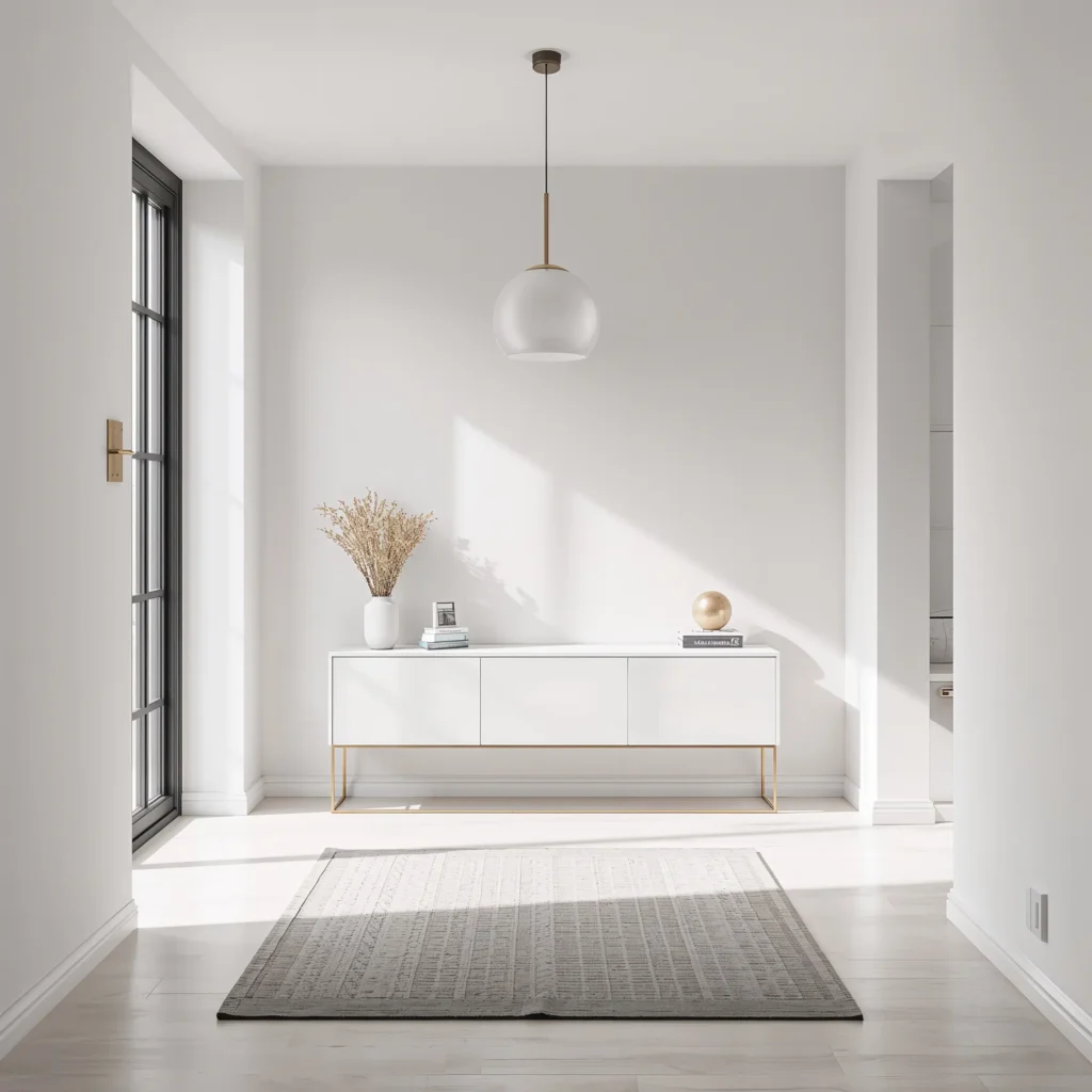 Stick to a neutral palette with whites, grays, and blacks as your foundation. You can throw in one accent color if you’re feeling adventurous, but honestly? The beauty comes from the simplicity. Float that console table against the wall—no chunky legs allowed here—and keep surfaces clear except for maybe one sculptural object.