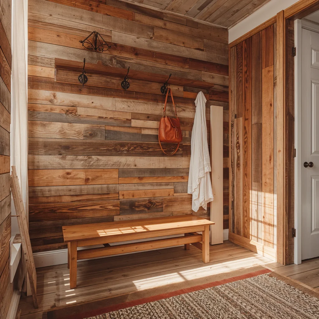 Now, if minimalism makes you yawn, let’s talk about bringing some serious character to your entrance. A rustic wooden foyer feels like a warm hug every time you come home—and who doesn’t need that after dealing with traffic?
