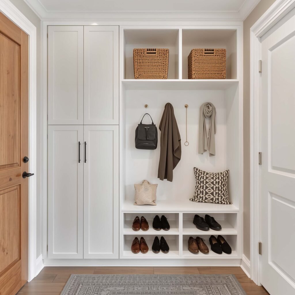 Here’s my favorite trick: use the vertical space everyone forgets about. Install hooks or a narrow shelf near the ceiling for seasonal items. Add a slim shoe cabinet that’s only 6 inches deep but holds a surprising amount. Mirror the opposite wall to double the visual space—oldest trick in the book but it works every time.
