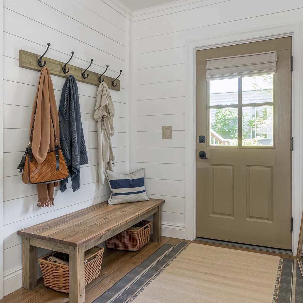 Farmhouse style gets a bad rap sometimes (looking at you, excessive shiplap), but when you strip away the trendy stuff, it’s actually incredibly practical and welcoming. The whole aesthetic centers around functionality meeting comfort, which is exactly what an entrance needs.