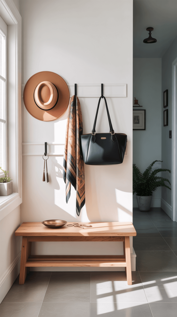 - Hooks or a Wall Rack: Unless your bench has them built-in, you need a place for coats and bags. A set of cool hooks or a small rack keeps things off the floor and the bench clear.