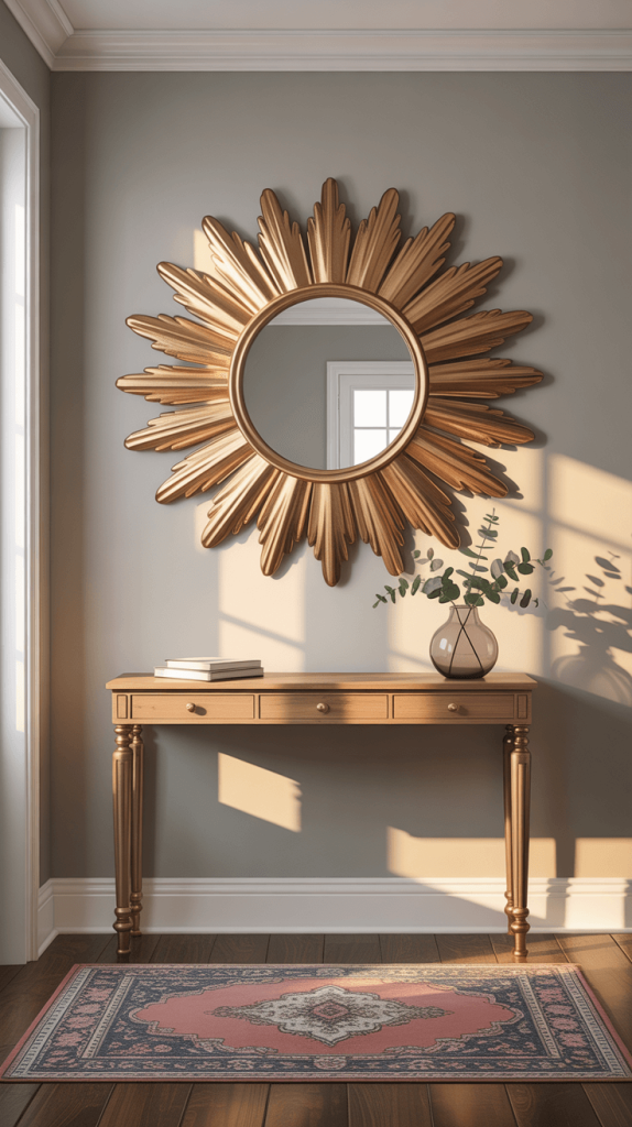 Let’s start with the MVP of entryway decor: the statement mirror. This is my go-to, my number one, my desert-island pick. Why? Because it checks every single box.