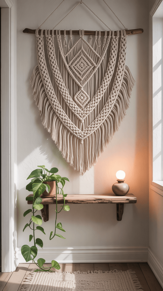 The texture that wood adds is unmatched. It makes the space feel grounded, rustic, and inviting. It pairs beautifully with almost every other style, from industrial metal hooks to modern art.
