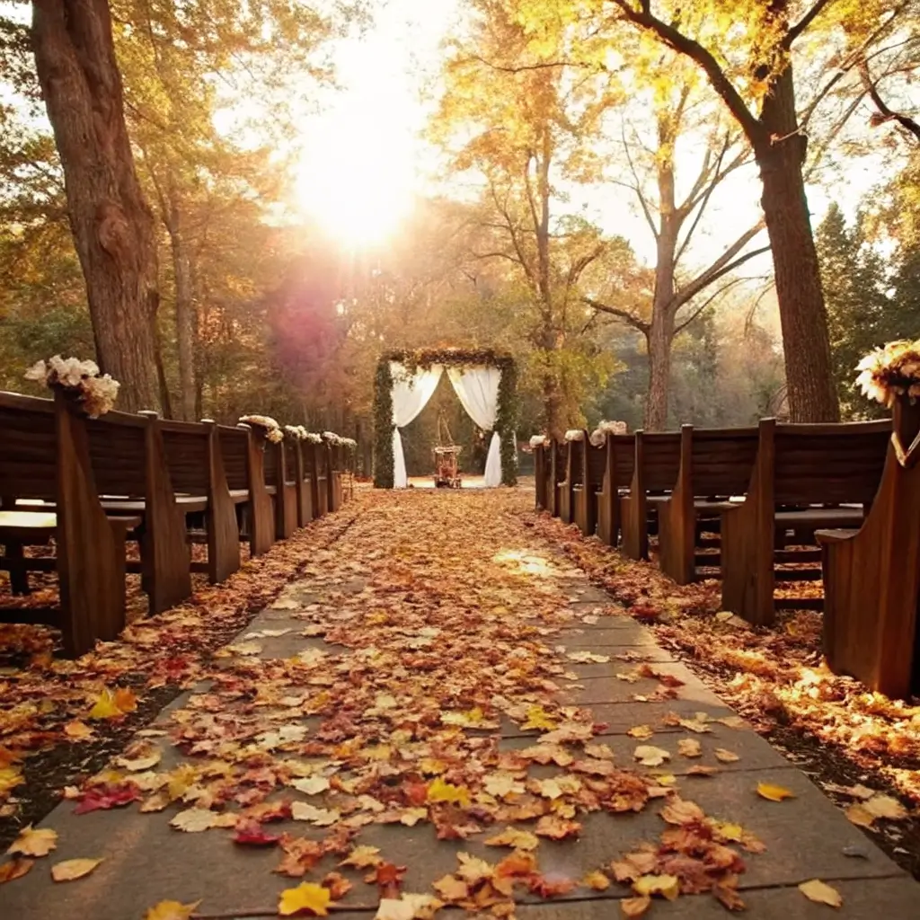 Nothing says “fall wedding” quite like walking down an aisle carpeted in golden leaves. But here’s the thing – real leaves can be unpredictable (hello, wind!), so let’s talk about creating this look the smart way.