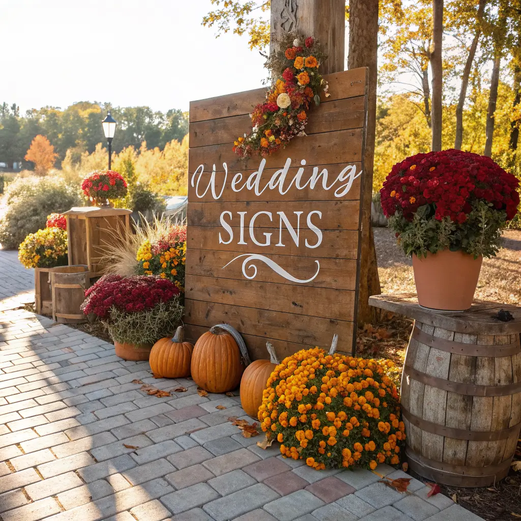 Wooden signs are having a major moment, and for good reason – they’re versatile, photograph beautifully, and add that perfect rustic-chic element to fall weddings. But please, let’s elevate beyond the basic “Welcome to Our Wedding” sign.