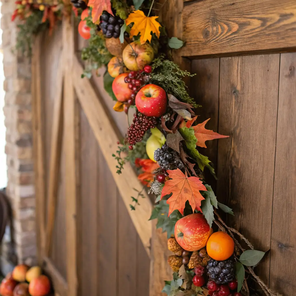 Fresh garland incorporating seasonal fruits and foliage is stunning and more affordable than you might think. We’re talking about creating lush table runners or hanging installations using a mix of greenery, fruits, and autumn elements.