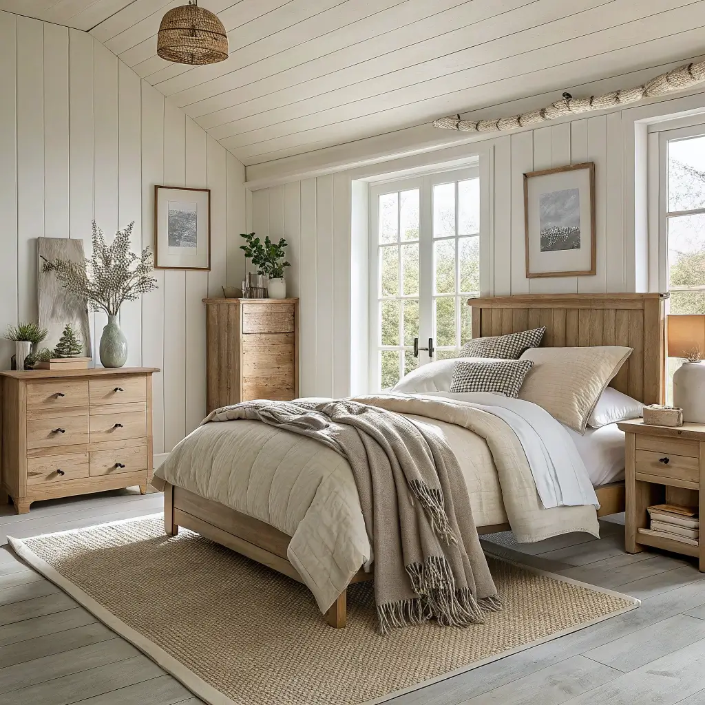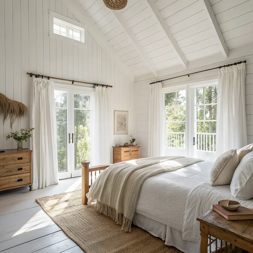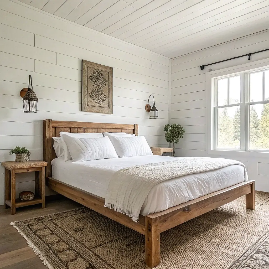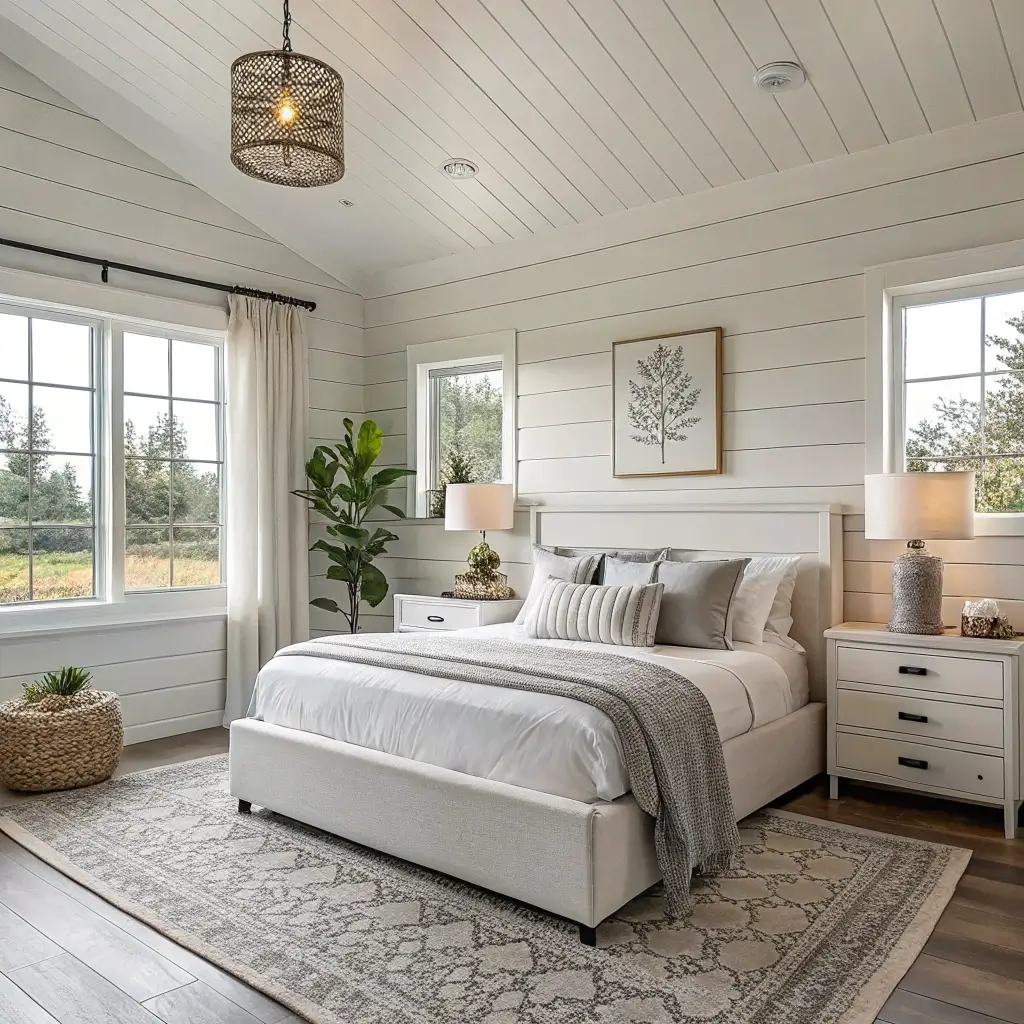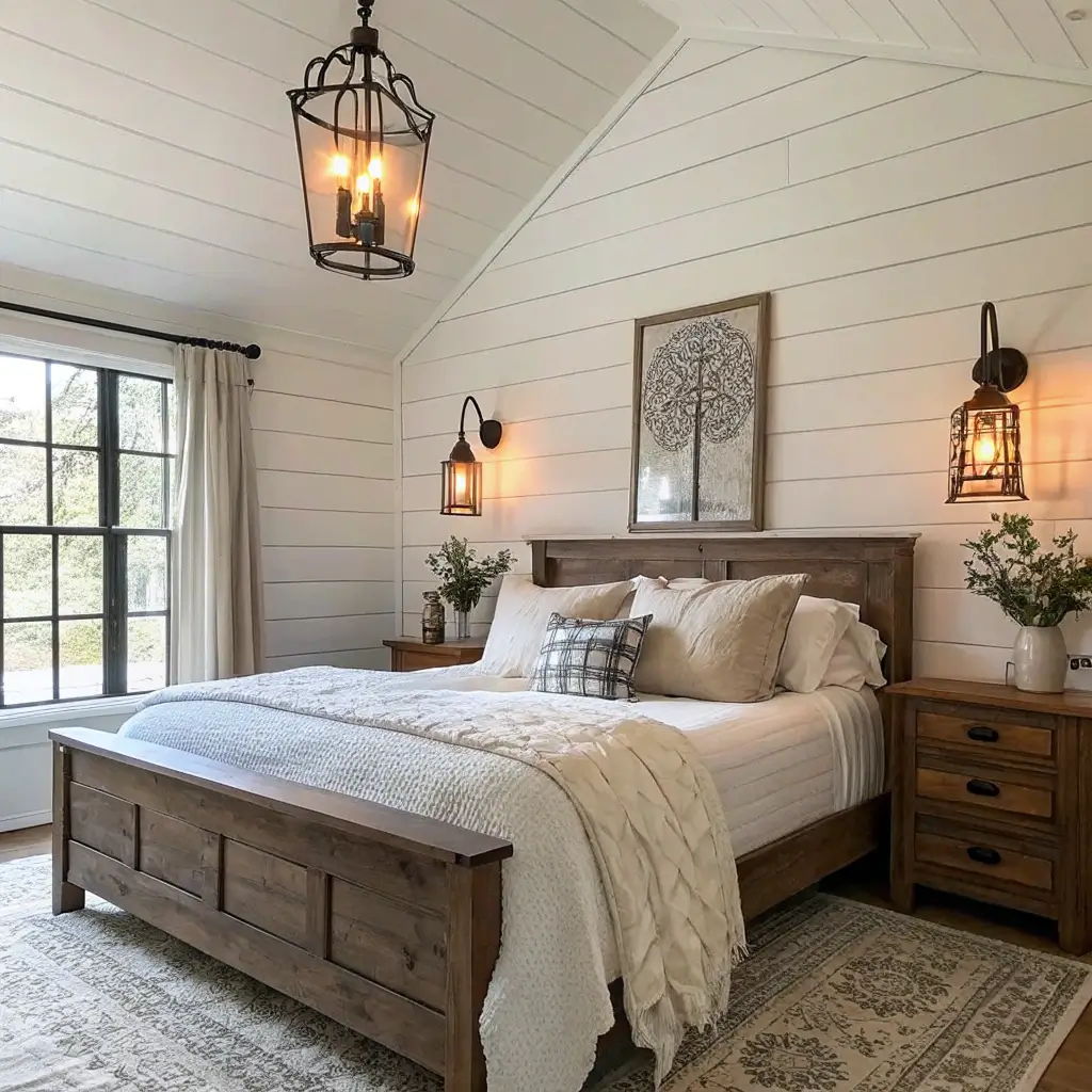 Farmhouse Bedroom with Shiplap Walls