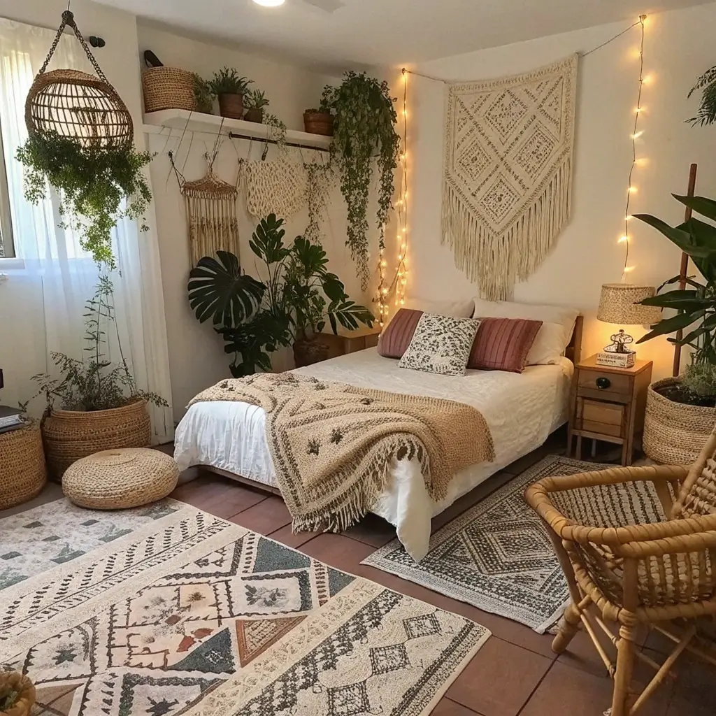 Plants play a huge role here too. While traditional farmhouse might have a simple vase of wildflowers, boho farmhouse goes all out with hanging planters, potted succulents, and trailing ivy. My bedroom currently houses 12 plants—my partner says it’s excessive, but I call it “bringing the outdoors in” 🙂