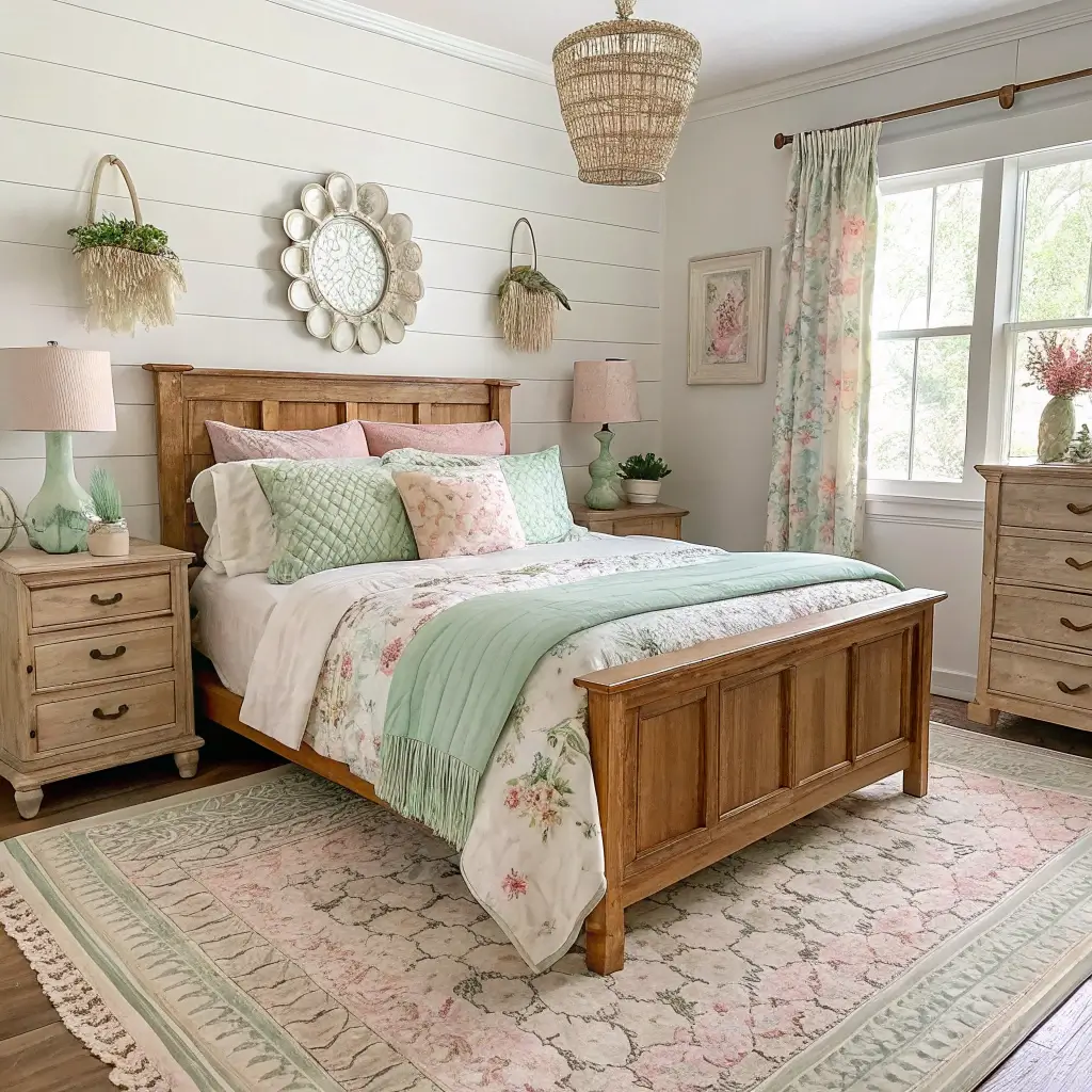 Soft Pastel Farmhouse Bedroom