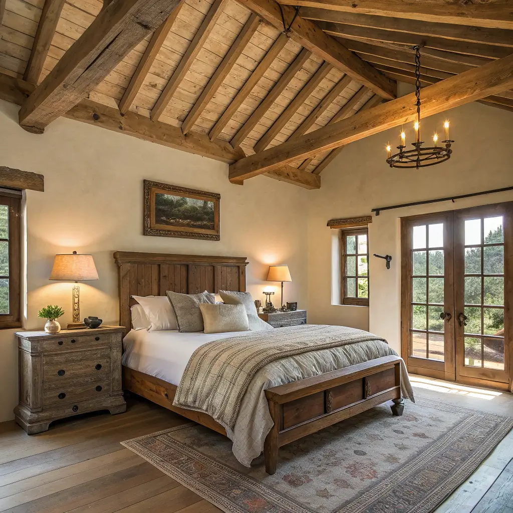 Farmhouse Bedroom with Exposed Beams