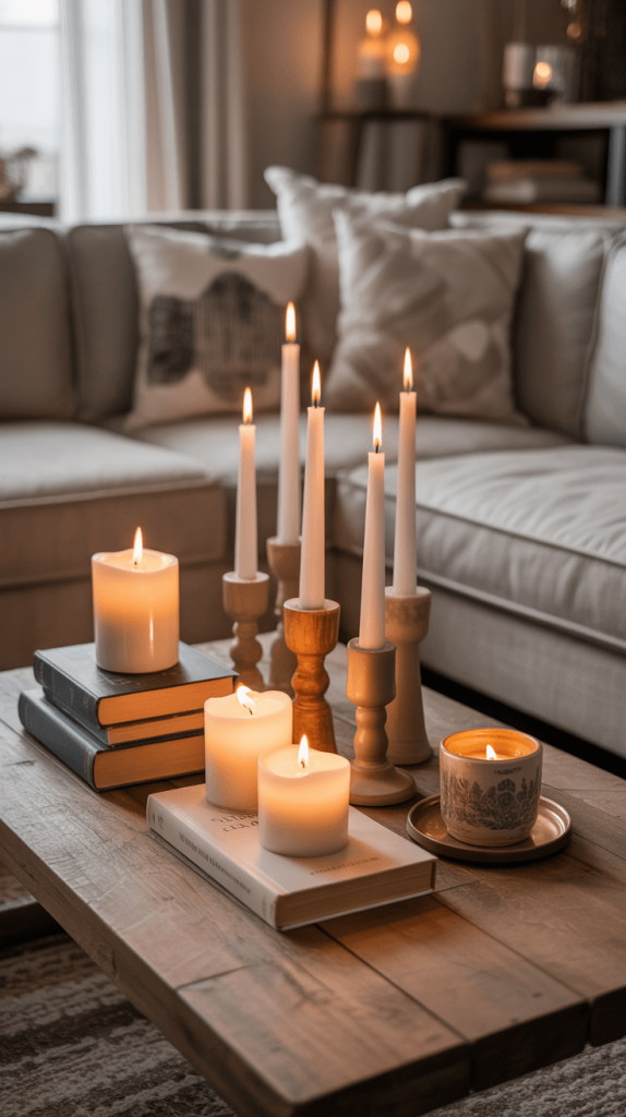 Lighting is everything when it comes to coziness, and your coffee table is prime real estate for it. But one candle is a start; a curated collection is a mood.