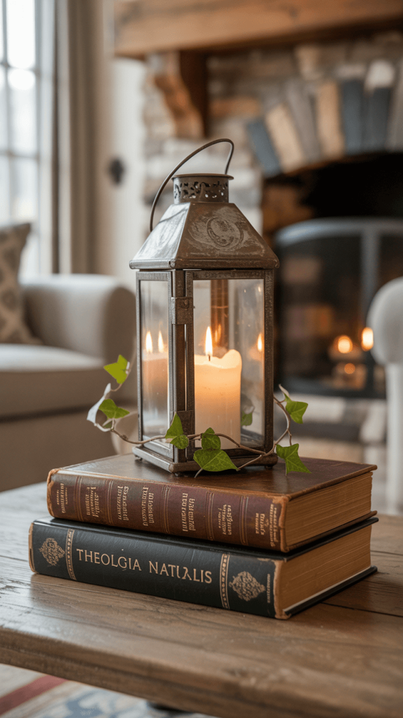 The Book Stack: We’re not talking about your latest paperback thriller. Hunt for vintage books with worn leather bindings, fabric covers, or interesting titles. Remove the dust jackets to reveal the beautiful, time-worn covers beneath. Use them as risers for other items, like a small vase or your lantern, to create different levels.