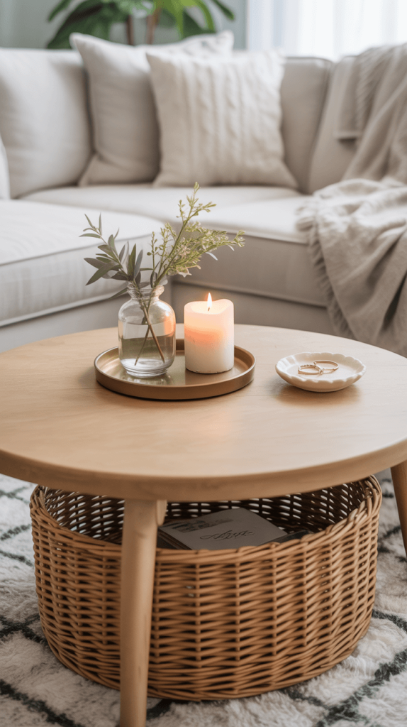 • The Under-Table Save: Remember that basket we talked about for throws? If your table has a lower shelf, that is prime decorating real estate. A couple of stylish books or a small basket down below can contribute to the vibe without cluttering the top.
