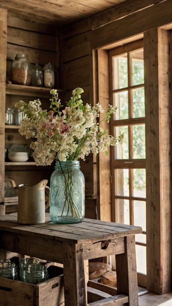 Farmhouse style celebrates creativity. Use mason jars as vases, wooden crates as storage, or old ladders as display stands. This not only saves money but also adds a personal touch to your space.
