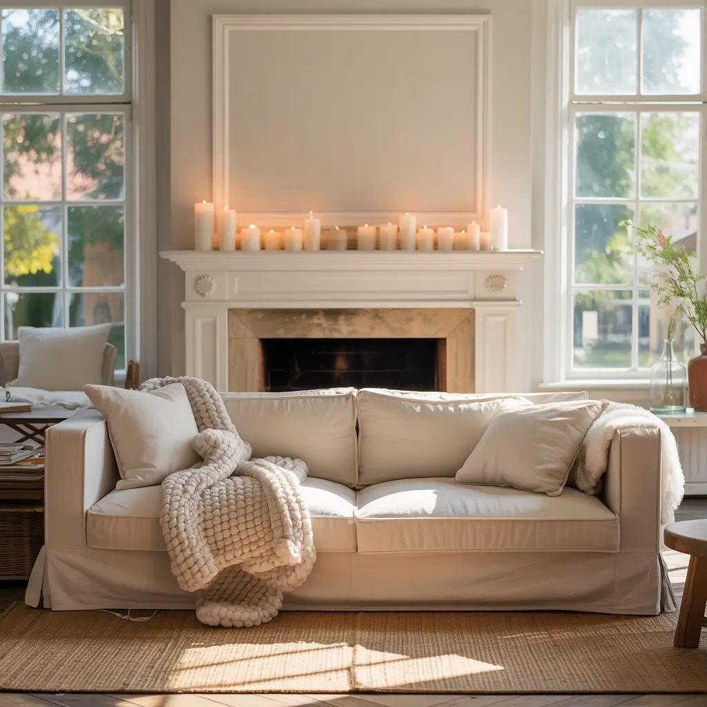 The trick I’ve discovered is mixing different whites and off-whites. Pure white next to cream next to ivory creates depth without adding color. Then you layer in textures like chunky knit throws, weathered wood, and maybe a touch of natural greenery.