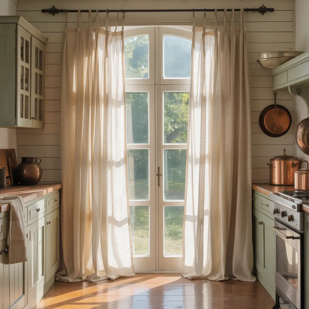 I layer sheer panels with heavier linen curtains in my kitchen, and it’s honestly life-changing. Morning light filters beautifully through the sheers alone. Need more privacy for dinner? Pull the linen panels closed. Having people over? Tie everything back for maximum openness.
