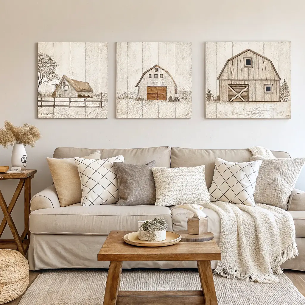 Sometimes you need art that whispers rather than shouts. Neutral canvas prints provide that perfect backdrop without competing with your other decor elements. Think soft watercolor landscapes, minimalist line drawings of farm animals, or typography in muted tones.