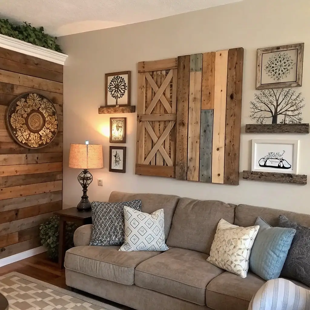 Sand them down – splinters aren’t farmhouse chic. Leave natural or stain to match your decor. I made a American flag from pallet wood that gets compliments constantly. Simple geometric patterns work too. The wood’s character does most of the work for you.