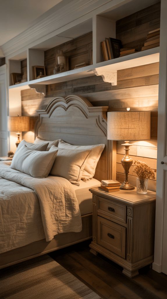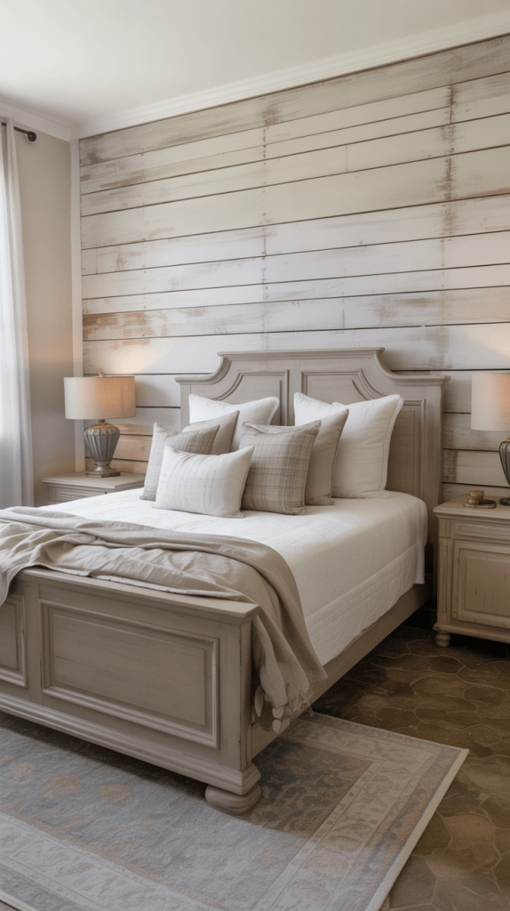 - Accents: Floating wood shelves, a classic wooden bench placed at the foot of the bed, or even a large, rustic mirror frame.
