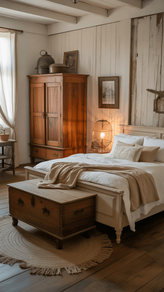 - An Old Trunk: Place it at the foot of the bed for storage and style.