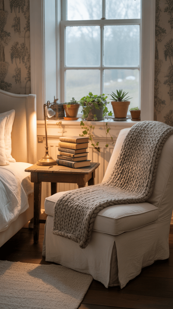 - The Extras: A small side table for your coffee or book, a soft throw blanket draped over the chair, and maybe a tiny bookshelf nearby. Instant cozy corner.