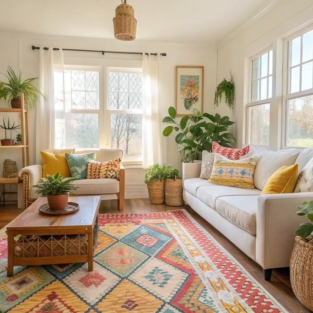 - Mix patterns carefully: If your rug is patterned, keep pillows and curtains simpler