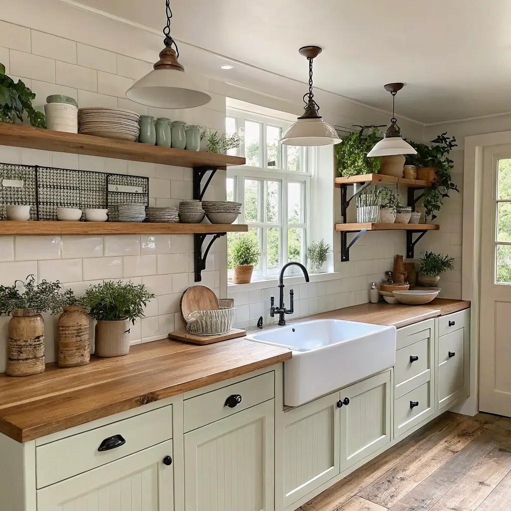 Open shelving and farmhouse sinks are basically the power couple of kitchen design. They both embrace that “nothing to hide” philosophy that makes kitchens feel honest and inviting.