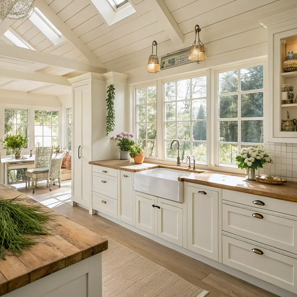 White or light-colored farmhouse sinks reflect light beautifully, especially when positioned under a window (the dream setup, honestly). Add glass cabinet doors, light countertops, and minimal window treatments for maximum brightness.