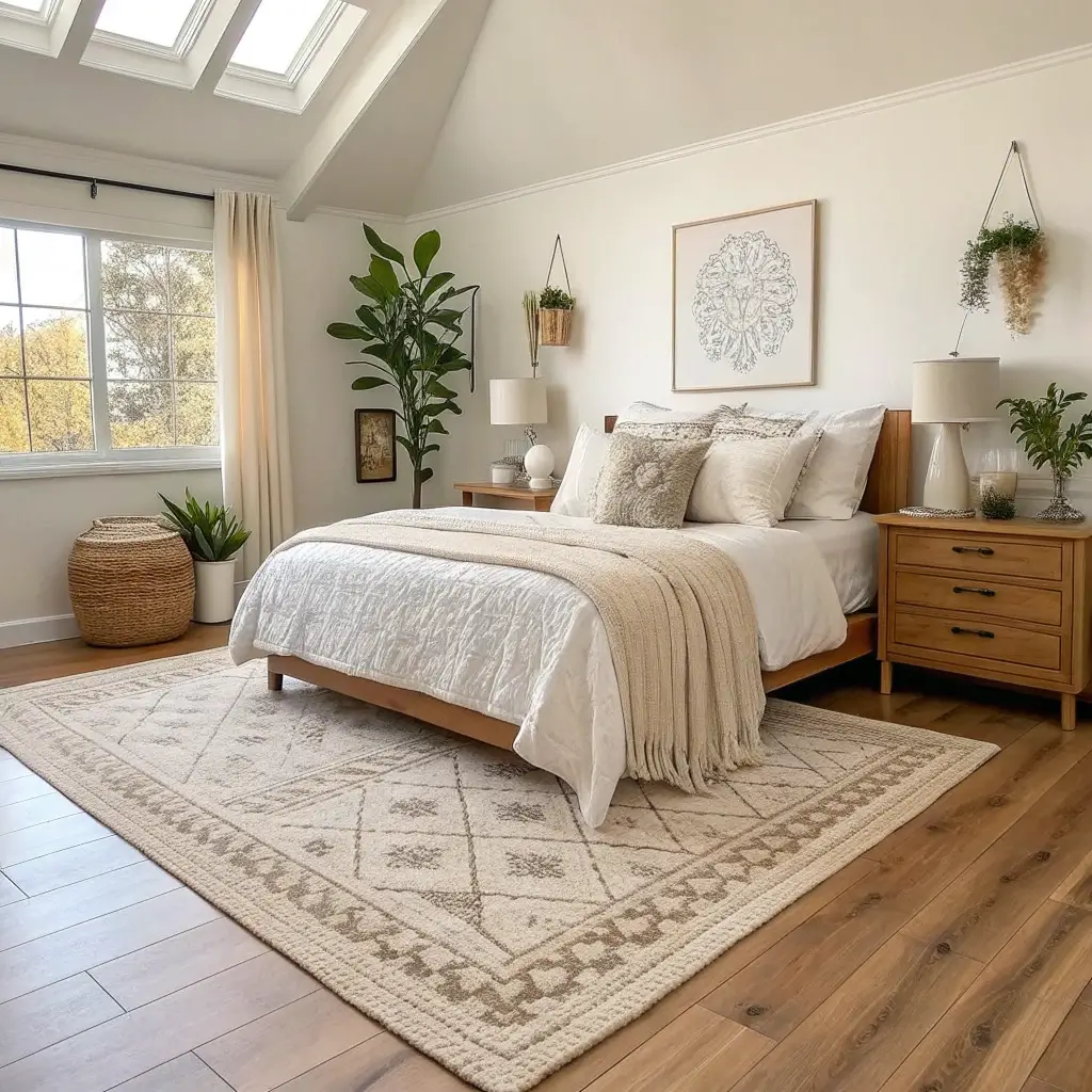 Choose rugs in earth tones or soft patterns that complement your color scheme. Avoid busy patterns that create visual chaos – save those for your living room.
