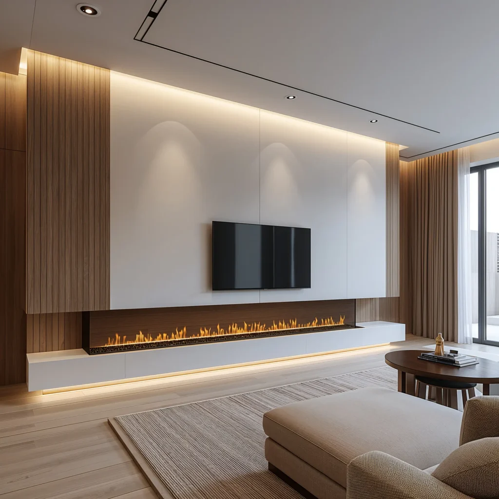 Modern Linear Fireplace with Floating TV Wall